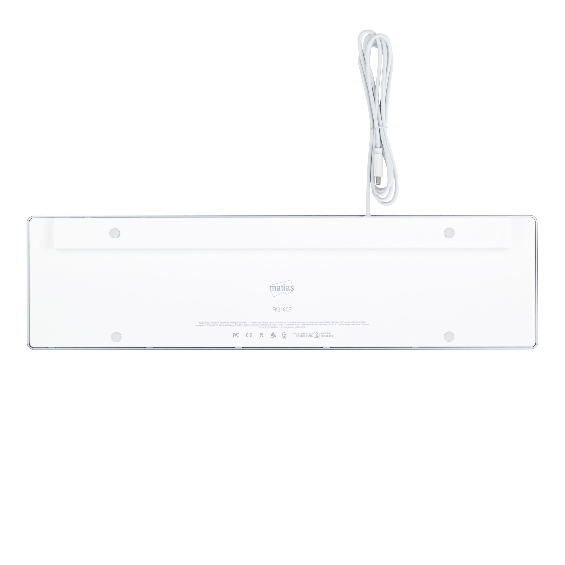 This keyboard is for the people who miss Apple's Wired Keyboard with Numeric Keypad. The Matias USB-C Aluminum Keyboard for Mac has a beautiful silver aluminum case with traditional white keycaps, just like you remember. It brings you a 2 port USB-C hub that is always useful, as well as the special Mac functions that you know and like. It has Matias scissor switches for a slim and comfortable typing experience. Of course, it also connects to your Mac by a secure and reliable USB-C cable, hard-wired right into the keyboard.