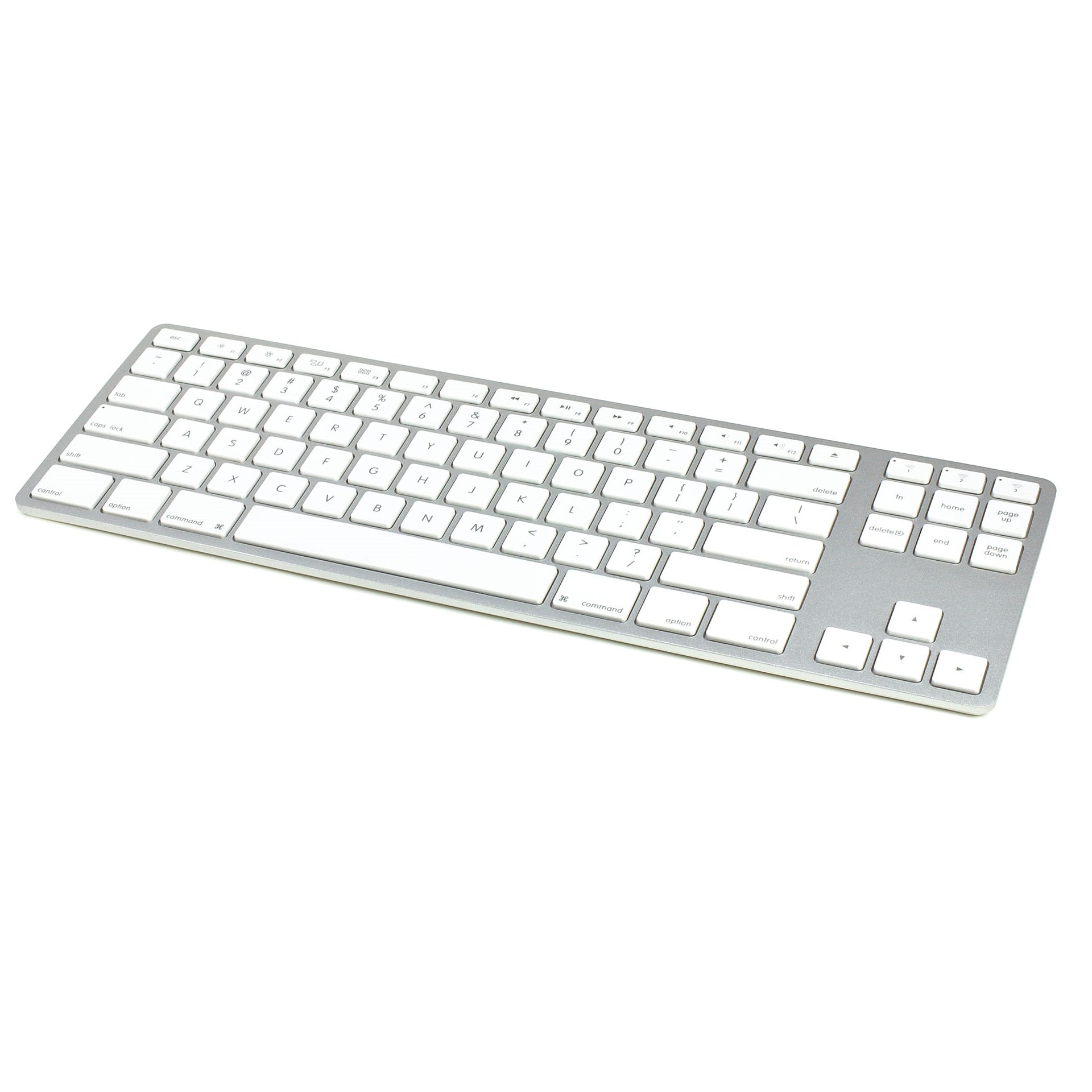 The "Matias Wireless Aluminum Tenkeyless Keyboard - Silver" is a slim, aluminum, wireless keyboard with a similar layout to the familiar Apple Wireless Keyboard. It has two features that enhance your experience compared to the regular Apple Wireless Keyboard: