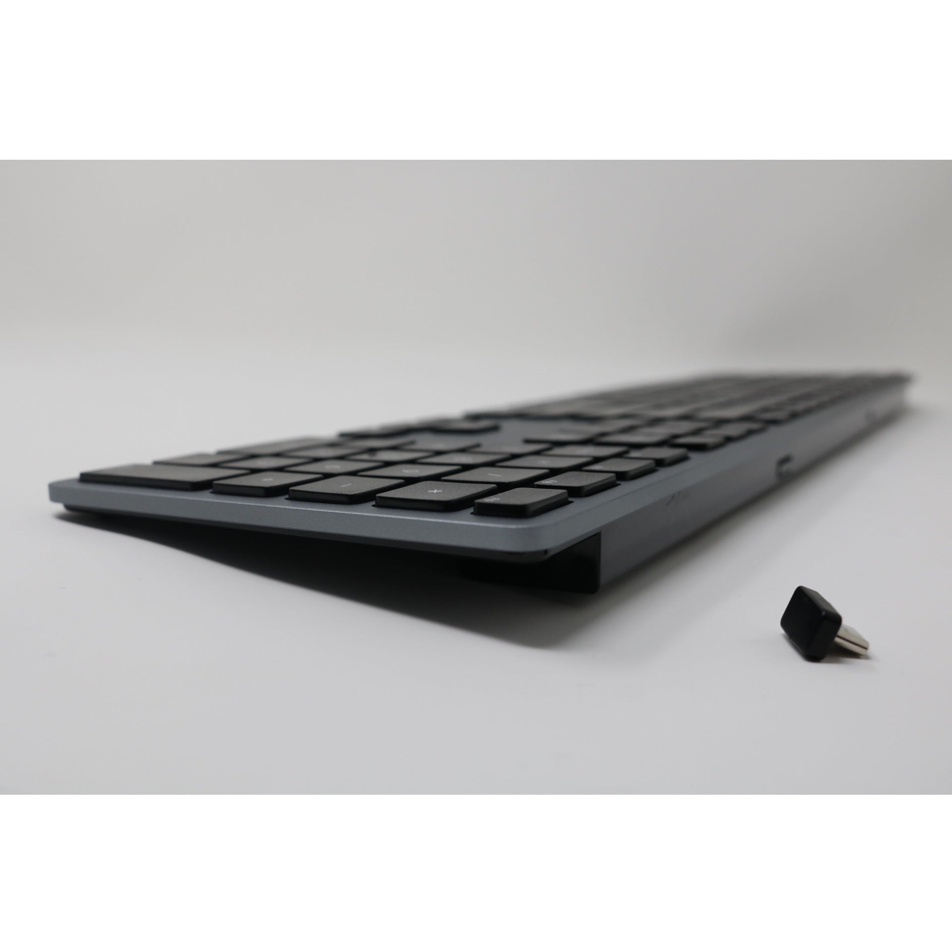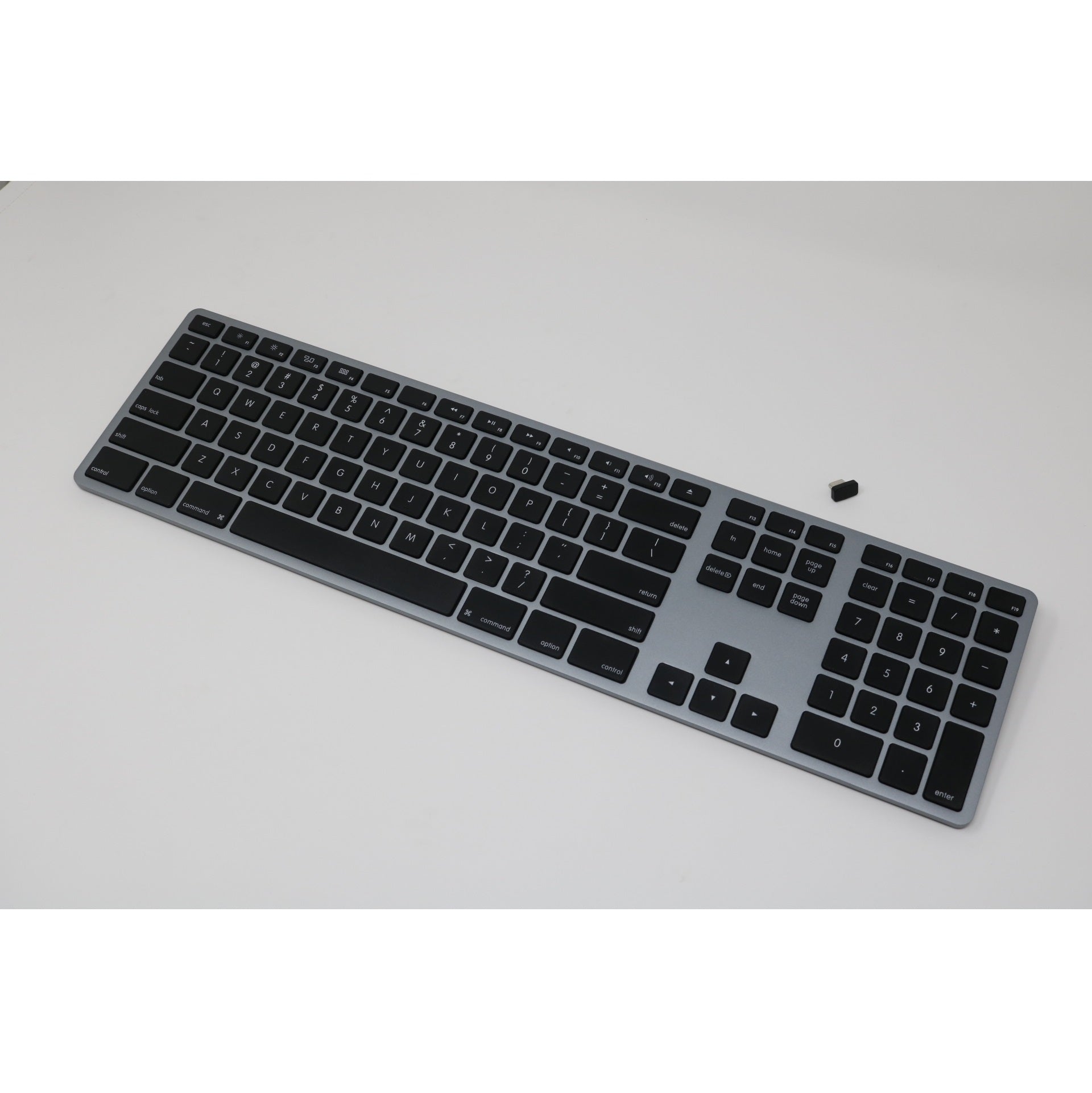 The Matias Wireless USB-C Aluminum Keyboard is a full-size scissor switch keyboard made with anodized space gray aluminum. Its rechargeable battery has an incredible battery life up to 3 years before charging. It features our patent pending USB-C nano receiver, which is the world’s smallest wireless receiver for USB-C ... just plug the receiver into your computer and your keyboard instantly works. AES-128 bit encryption in the wireless transmission between keyboard and receiver ensures the keyboard is also suitable for high security corporate or government environments.